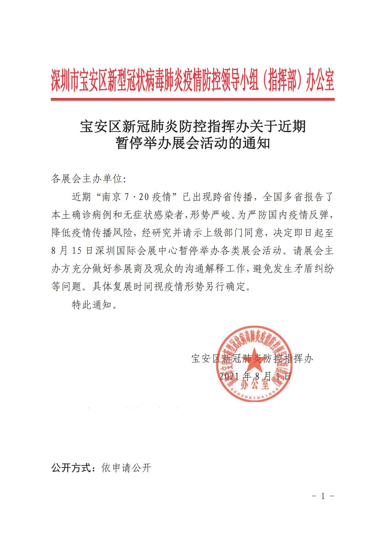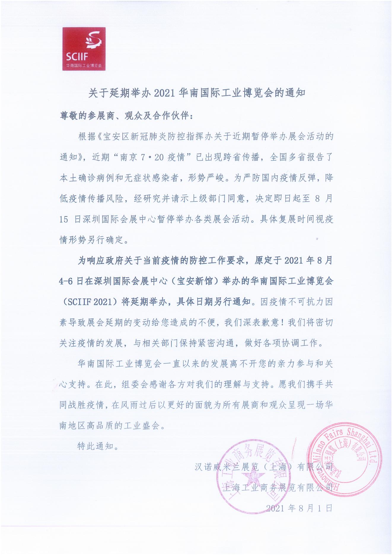 接通知,受相關(guān)疫情影響,原定于8月3日的展會延期