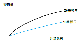 預壓力是預先給與鋼珠負荷力,亦即加大鋼珠直徑,利用鋼珠與珠道之間負向間隙給與預壓,此舉能提高直線導軌的剛性及消除間隙;以右圖來解釋,提高預壓力可增加直線導軌剛性。但小規格建議選用輕預壓以下預壓,以避免因預壓選用過重降低其使用壽命。