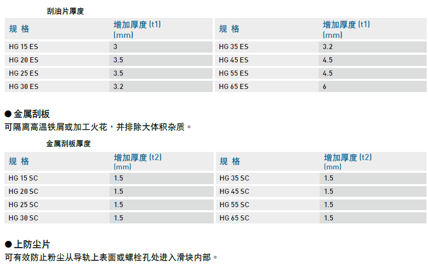 HIWIN特別針對具有粉塵顆粒之嚴苛作業環境,如木工機械、玻璃/石墨加工等設備,開發具有超高防塵功能之特殊配件,實現超高防塵性能。若有下列高防塵配件需求時,請于產品型號后面加注代碼。