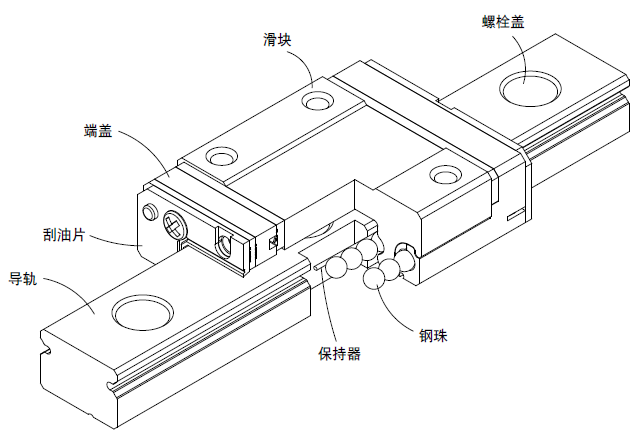 ? 滾動循環系統:滑塊、導軌、端蓋、鋼珠、保持器
