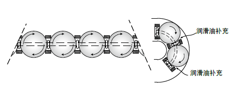 專利的同步聯(lián)結(jié)器在中間的間隔部設(shè)計(jì)有儲(chǔ)油的空間,可供給鋼珠在運(yùn)行時(shí)潤(rùn)滑之需要,且在經(jīng)過(guò)方向回轉(zhuǎn)部時(shí),能夠?qū)?rùn)滑油均勻的補(bǔ)充于儲(chǔ)油空間內(nèi),繼續(xù)均勻潤(rùn)滑鋼珠,所以補(bǔ)充潤(rùn)滑油的頻率可有效的減少。由表格2-5-1的測(cè)試數(shù)據(jù)顯示,在出廠前添加高性能的鋰皂基油脂,在0.2倍的動(dòng)額定負(fù)荷下,可持續(xù)使用超過(guò)4000公里的壽命里程而不產(chǎn)生疲勞破壞。所以在出廠時(shí)即添加高性能的潤(rùn)滑油脂,在一般極輕